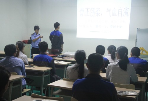 講座中,潘老師緊扣人民關心的健康話題,用形象生動的語言告訴普康集團職工面對意外情況如何自救和施救,詳細講解了人工呼吸、心臟復蘇等科學急救方法。并根據目前的霧霾、甲醛等環境污染的現狀,提出了針對性的措施。同時針對普康集團職工實際情況,講解了肩周炎、頸椎病、肥胖等職業病的預防保健知識。和與會職工開展了多種形式的現場互動,并現場示范中醫穴位理療,氣氛歡快活躍。